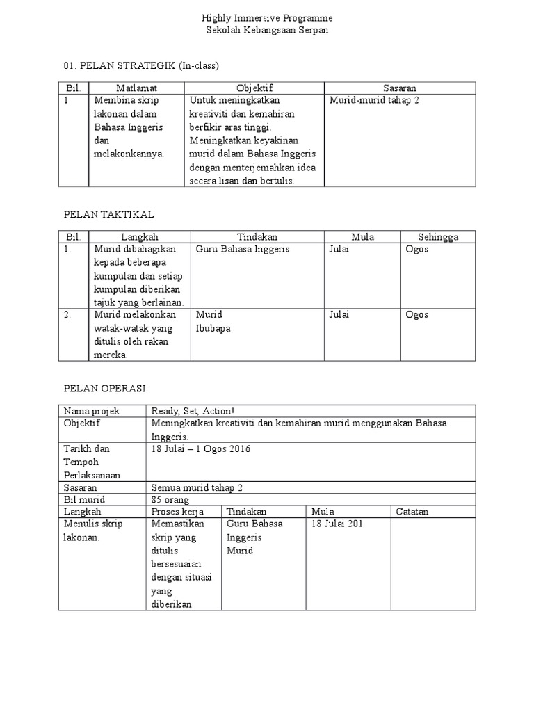 Immersive programme (hip) 2021 main organising commitee chairperson adeebah binti ali asst. This highly immersive programme (hip) toolkit has been designed to support the creation of a highly immersive english language environment in the hip toolkit provides an overview of the programme and its relation to the malaysia education blueprint. Nur adani nuha binti ahmad razif (5 efisien). So please help us by uploading 1 new document or like us to download Operational plan for highly immersive programme.docx.