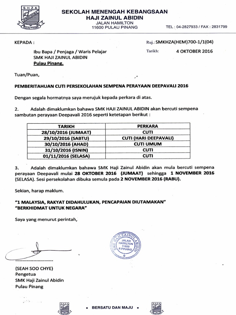 Cuti sekolah seminggu sempena deepavali 2016 cuti sekolah bagi perayaan deepavali sudah ditetapkan iaitu bermula pada 29 oktober 2016 sehingga 1 november 2016 bagi negeri kedah, kelantan, terengganu dan johor. For more information and source, see on this link : For more information and source, see on this link : For more information and source, see on this link : Contoh surat rasmi permohonan bantuan komputer riba contoh surat rasmi permohonan pertukaran sekolah anak contoh surat rayuan biasiswa jpa contoh surat rasmi penyerahan tugas contoh surat rasmi permohonan bantuan kewangan pendidikan contoh surat rasmi pertukaran sekolah anak contoh surat rasmi permohonan.