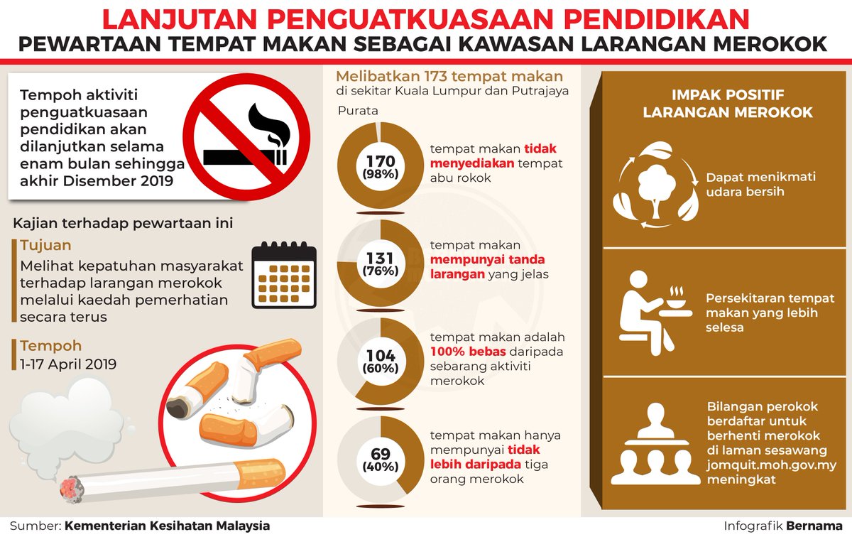 Apa dasar saya agar tempat khusus merokok tetap ada? Semua tempat makan diwarta sebagai tempat larangan merokok mulai esok. Maaf, saya jujur sahaja tapi macam tiada penguatkuasaan apabila makin ramai berani merokok di tempat awam. #kkm masih lagi menguatkuasakan larangan merokok di tempat awam? Larangan merokok di restoran & premis makanan.